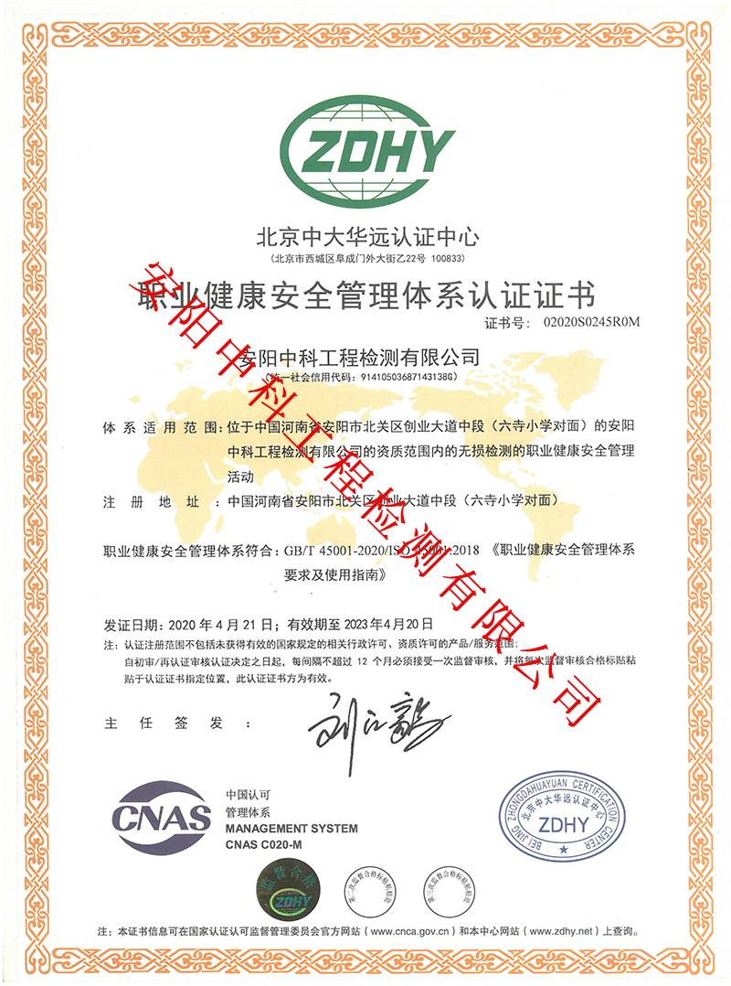 職業(yè)健康安全管理體系認(rèn)證證書